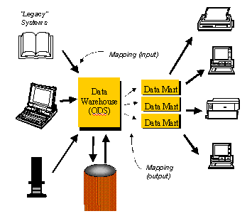 Note that one function of the ODS is to make it possible to design and create new data marts without having to go back to the legacy systems each time to figure out where the desired data are to be found. Presumably the architecture of the ODS is transparent enough that each time a new data mart must be designed, it is straight-forward to determine exactly where the data should come from.