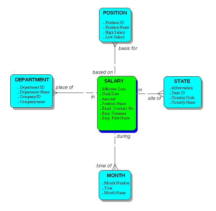 This implies a fairly dramatic reworking of the Corporate Data Model architecture to get to this point. Each of the dimension and fact tables can, however, be mapped directly to combinations of entities in the Corporate Model.